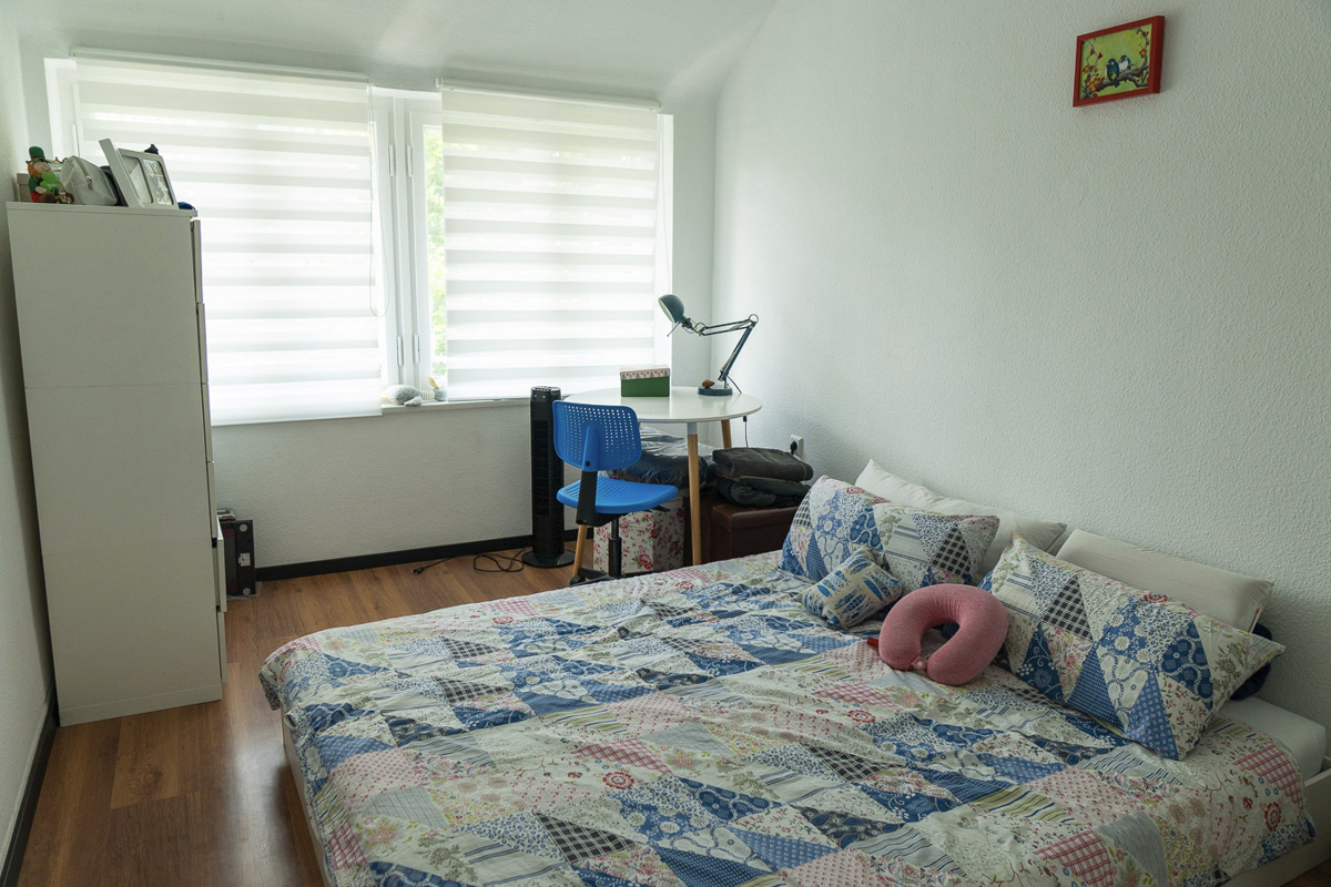 Die Wohnung ist komplett möbliert und sofort bezugsfertig. Die hochwertige Einbauküche verfügt über Ceranfeld, Backofen, Kühlschrank und großzügige Schrankflächen – zusätzlich ist sie durch ein Fenster mit Tageslicht und Lüftungsmöglichkeit ausgestattet. Direkt angrenzend befindet sich der Essbereich im Wohnraum, der durch das Sofa und ein Regal ergänzt wird und ausreichend Platz für gemeinsame Mahlzeiten bietet.Im Schlafzimmer erwartet Sie ein Doppelbett samt Nachttischen sowie ein geräumiger Kleiderschrank. Ein Schreibtisch mit Stuhl bietet sich ideal für Home-Office oder Studierende an. Alle Wohnräume sind mit einem warm einladenden Laminatboden ausgestattet.